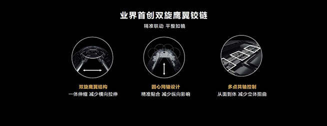 那么優(yōu)秀的鉸鏈應(yīng)該是怎樣的呢?三年出了五款折疊屏機(jī)型,且是業(yè)內(nèi)唯一一家率先集齊內(nèi)折、外折、豎折三種折疊屏形態(tài)的廠商,華為顯然更有發(fā)言權(quán)。以華為Mate Xs 2為例,這是華為第三代采用外折疊方案的機(jī)型,在這條華為領(lǐng)跑的賽道上,Mate Xs 2再次實(shí)現(xiàn)突破,帶來(lái)行業(yè)首創(chuàng)的雙旋鷹翼鉸鏈和復(fù)合強(qiáng)化結(jié)構(gòu)屏幕兩大重要?jiǎng)?chuàng)新。