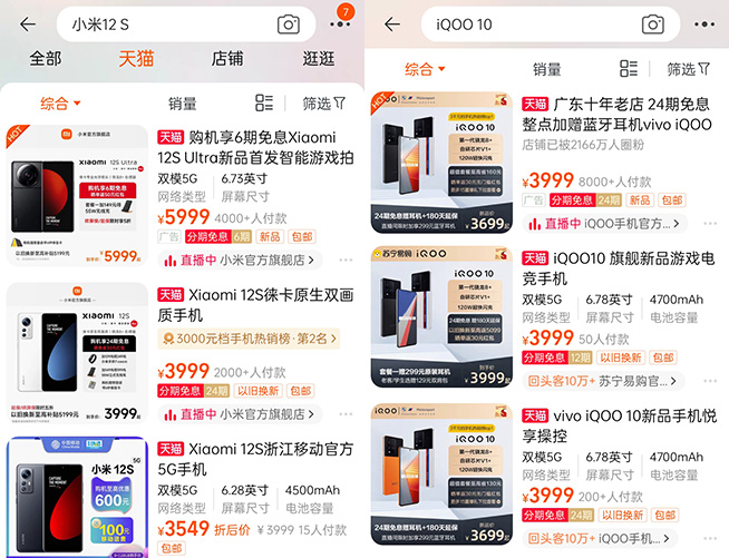 天貓的銷售情況則更耐人尋味,iQOO 10系列兩款機(jī)型至今有超過13000人付款,小米12S系列三款機(jī)型中杯、大杯和超大杯付款人數(shù)依次是2000+、3000+和4000+,也就是說上市晚了近三周的iQOO 10系列,在天貓旗艦店的銷量實(shí)現(xiàn)了反超。