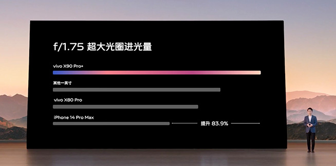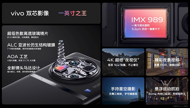 定位做大部分用戶主力相機、攝影師備用相機的vivo X90 Pro+,搭載的是與小米12S Ultra相同的索尼IMX 989主攝,不過憑借多項針對性的改進,自稱“一英寸之王”。比如很多人熟悉的蔡司T*鍍膜,能夠更好抑制眩光和鬼影,其次vivo通過AOA小型化堆疊工藝,做到了f/1.75超大光圈,比普通一英寸大底的進光量提升24%。