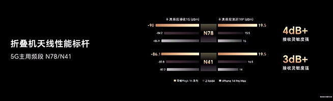 榮耀Magic Vs全系搭載高通驍龍8+移動(dòng)平臺(tái),得益于軟硬件優(yōu)化以及更大的電池,其續(xù)航能力號(hào)稱是目前折疊屏手機(jī)中的佼佼者,且“遙遙領(lǐng)先”。通信能力也是榮耀一直引以為豪的,在與iPhone 14 Pro Max的對(duì)比中,榮耀再次形容其天線性能遙遙領(lǐng)先。此外,榮耀Magic Vs系列首發(fā)搭載MagicOS 7.0,一天前榮耀總裁趙明也提到,新系統(tǒng)在一些方面實(shí)現(xiàn)了遙遙領(lǐng)先,甚至比華為鴻蒙3還要流暢。