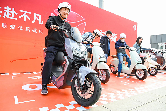 活動(dòng)現(xiàn)場(chǎng)媒體試騎雅迪冠能旗艦新品