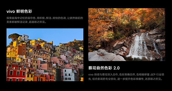 在15分鐘的發(fā)布會上,vivo X90s用了過半的篇幅介紹全新的“vivo質(zhì)感色彩”,一方面大概是因為vivo X90s其它方面的升級實在有限,另一方面質(zhì)感色彩是vivo影像團隊花了較多精力去做的事情。何為質(zhì)感色彩?可以理解為vivo風格的色彩美學,強調(diào)“濃郁、細膩、個性化”。隨著質(zhì)感色彩的加入,vivo X90s內(nèi)置的顏色風格選擇增至三款,另外兩款為vivo鮮明色彩和蔡司自然色彩2.0。