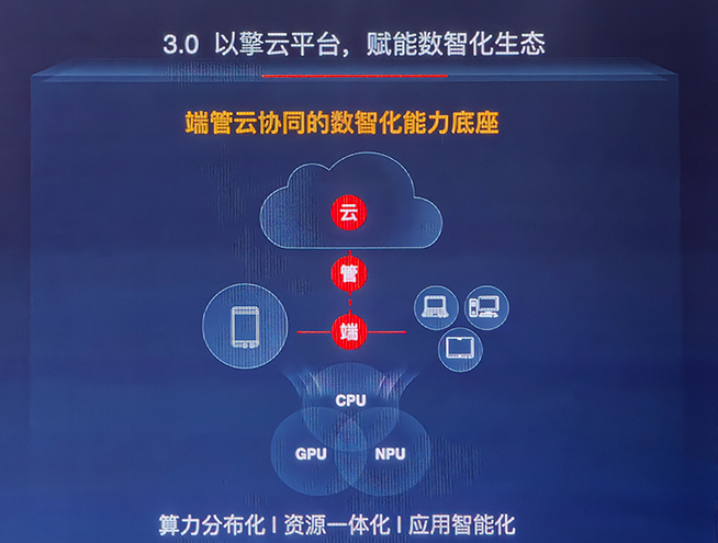 對于面向未來的第三階段,將致力于“以擎云平臺,賦能數(shù)智化生態(tài)”。端管云協(xié)同的數(shù)智化能力底座,能更精準、更高效滿足各大行業(yè)數(shù)字化需求,全面釋放數(shù)字生產(chǎn)力,進一步加速千行百業(yè)數(shù)字化轉型進程。