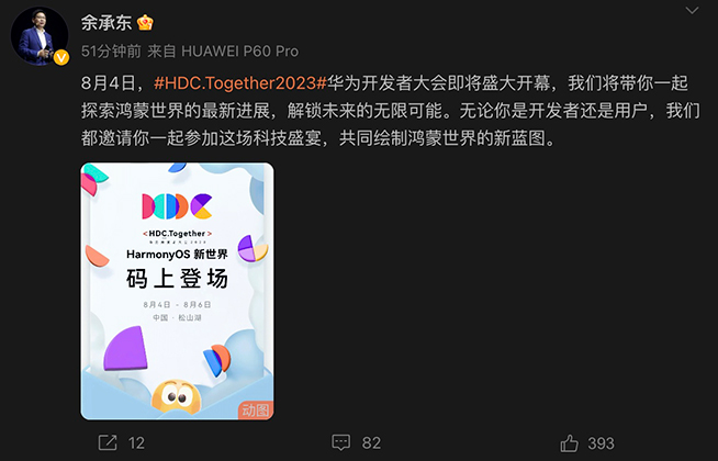 華為開發(fā)者大會2023將于8月4日揭幕,華為先前已宣布屆時會正式發(fā)布全新一代鴻蒙操作系統(tǒng)HarmonyOS 4。8月2日,華為常務(wù)董事、終端BG CEO、智能汽車解決方案BU CEO余承東在社交網(wǎng)絡(luò)上分享了由鴻蒙系統(tǒng)智慧助手“小藝”生成的HDC邀請函海報,從文案和海報中,HarmonyOS 4的一些關(guān)鍵信息漸漸浮出水面。