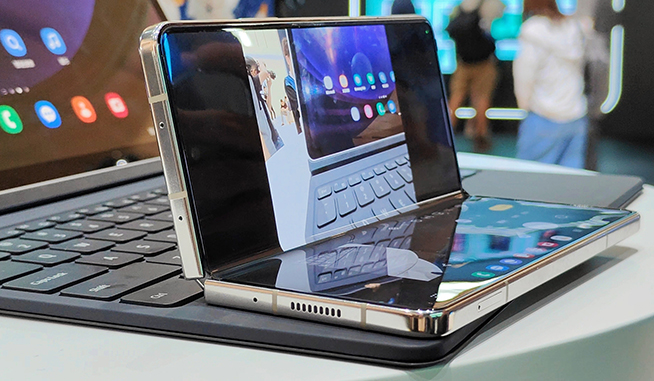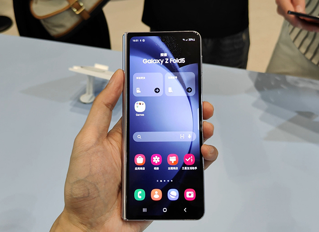三星Galaxy Z Fold5實現(xiàn)了進一步輕薄化,相比上代輕了10g,折疊閉合厚度減了2.4mm,刷新了三星大折疊屏的輕薄新紀錄。不過由于本人一直在用以輕巧著稱的OPPO Find N2,上手三星Galaxy Z Fold5后并沒覺得很輕,手感則確實蠻好,只是細長的外屏單手用起來還是有些費勁。該機繼續(xù)采用6.2英寸外屏和7.6英寸內屏,由于在上代的基礎上提升了峰值亮度,加上還有目前僅此一家的折疊屏+屏下攝像頭,在折疊屏顯示水準方面三星優(yōu)勢依然領先。
