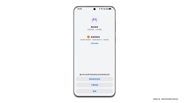 當(dāng)用戶誤觸誘導(dǎo)安裝彈窗,不小心下載了應(yīng)用,系統(tǒng)會主動攔截并提醒,用戶可以選擇取消安裝;當(dāng)用戶主動安裝可能存在風(fēng)險的應(yīng)用時,系統(tǒng)會自動將應(yīng)用加入應(yīng)用管控中心受控運行,如禁止其訪問位置、麥克風(fēng)等敏感權(quán)限,同時隱匿聯(lián)系人、通話記錄等隱私數(shù)據(jù);當(dāng)檢測到應(yīng)用在運行中存在有風(fēng)險行為時如在用戶不知情的情況下拉起其他應(yīng)用,應(yīng)用管控中心也會主動攔截。