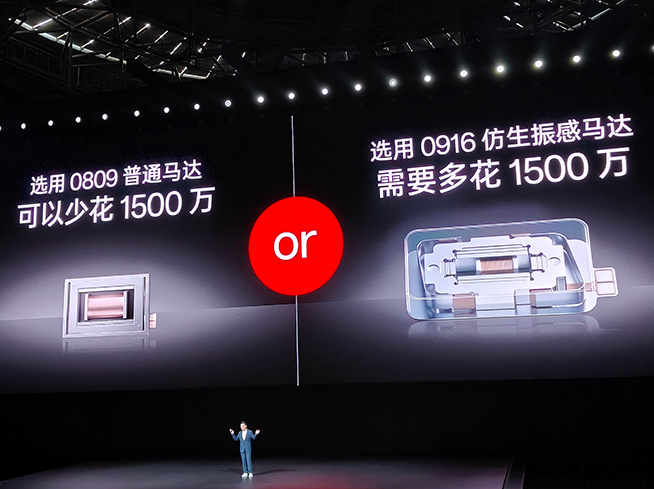 一加Ace 2 Pro繼續(xù)使用一加11同款的安卓體積最大的馬達(dá)——0916仿生震撼馬達(dá)。李杰透露,一加和友商馬達(dá)技術(shù)上差了3代,為此要多花1500萬元,這是產(chǎn)品力優(yōu)先的選擇。