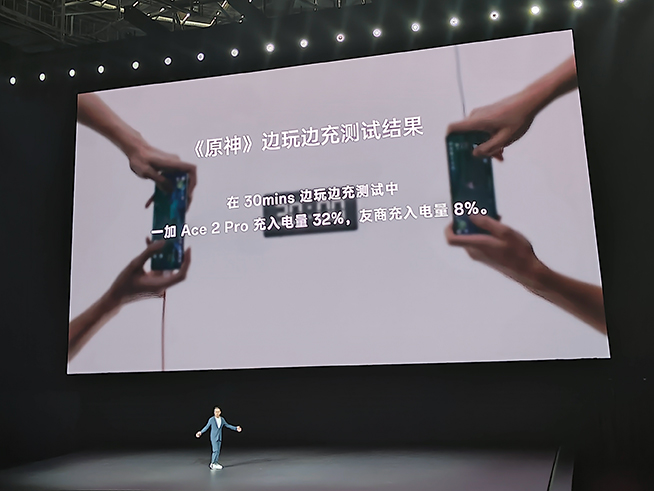 內(nèi)置5000mAh的電池的一加Ace 2 Pro搭配長壽版150W超級閃充,17分鐘從1%充至100%,且提升了邊玩邊充的效率。邊玩原神邊充電的對比中,30分鐘充電32%,友商僅有8%。