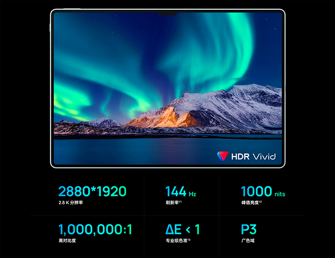 13英寸左右的屏幕,是很多經(jīng)典輕薄筆記本的顯示屏尺寸,也曾是大多數(shù)平板的“禁區(qū)”。如今華為MatePad Pro 13.2英寸用13.2英寸的臨境大屏探索平板新上限,其帶給用戶的價值遠(yuǎn)不止屏幕物理尺寸的提升。這塊無邊大屏采用高規(guī)格的柔性O(shè)LED材質(zhì),擁有2.8K超清分辨率,加上全局P3廣色域、ΔE<1專業(yè)級色準(zhǔn)、144Hz高刷新率等優(yōu)秀指標(biāo),意味著大視野也兼顧了細(xì)節(jié)畫質(zhì)及操控暢順感的出彩。