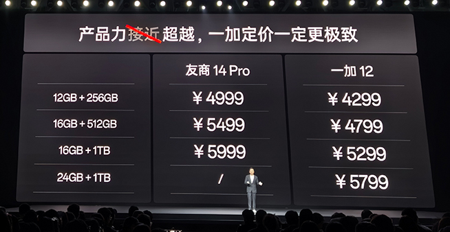 一加12定價(jià)4299元起步,共有12GB+256GB、16GB+512GB、16GB+1TB及24GB+1TB四款配置,后三款依次為4799元、5299元和5799元,將于12月11日正式開(kāi)售。李杰指出,一加12相比友商(小米)14 Pro,各版本都比友商機(jī)型便宜700元(友商無(wú)24B內(nèi)存版),產(chǎn)品力超越且定價(jià)更極致,是一加十年旗艦超越之作。