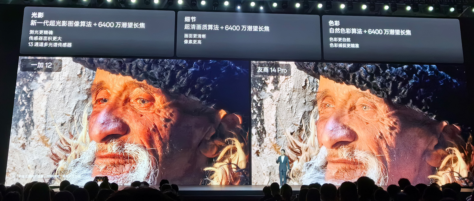 影像方面,一加12實(shí)現(xiàn)軟硬件升級(jí),用OPPO Find系列的影像力打造哈蘇超光影全焦段影像。該機(jī)配備索尼LYT-808主攝,并擁有高規(guī)格的3x潛望式長(zhǎng)焦,還有索尼IMX581超廣角鏡頭,號(hào)稱全主攝配置。一加中國(guó)區(qū)總裁李杰自信表示,一加12影像力超越了所有驍龍8 Gen3旗艦機(jī)的Pro版,現(xiàn)場(chǎng)還給出多組長(zhǎng)焦樣張PK,一加12的細(xì)節(jié)畫(huà)質(zhì)、光影表現(xiàn)以及明暗還原都比友商14 Pro優(yōu)秀。