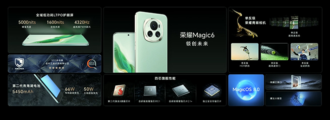 近日,榮耀Magic6系列旗艦手機正式發(fā)布,全系采用高通第三代驍龍8芯片,標配榮耀巨犀玻璃、峰值亮度5000尼特屏幕、4320Hz超高頻調(diào)光、第二代青海湖電池、無線充電、動態(tài)鷹眼主攝H9000,號稱60個月持久流暢。