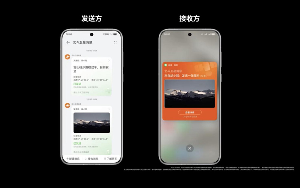 在很多時候,圖片能夠比文字內(nèi)容更迅速且直觀地傳達(dá)信息。華為Pura 70 Pro、Pura 70 Pro+、Pura 70 Ultra首發(fā)支持全新的北斗衛(wèi)星圖片消息。從單向北斗衛(wèi)星短報文到收發(fā)衛(wèi)星文字信息,再到如今的衛(wèi)星圖片信息,華為又一次解鎖了新的“捅破天”技術(shù)。