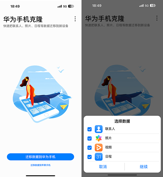 為了方便蘋果用戶換機導數據,華為手機克隆App提供了易用快捷的解決方案。iPhone用戶安裝此應用后,可直接通過無線連接一鍵將蘋果手機的照片、視頻、聯(lián)系人、日程快速傳輸至華為手機,點到點高效完成,即便小白用戶也能輕松上手操作,手機搬家就是如此簡單,助你換機無憂。