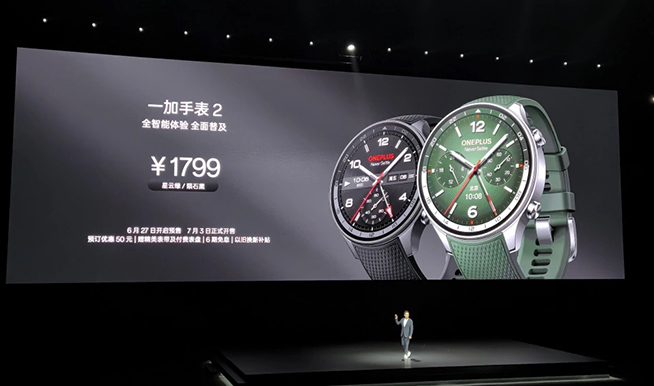 接下來是一加手表2,售價(jià)1799元,采用圓形表盤設(shè)計(jì),有兩款配色可選。這款新手表其實(shí)和之前OPPO推出的首款圓形手表 OPPOWatch X較為相似,也采用了4納米旗艦級(jí)驍龍W5芯片,獨(dú)立eSIM,支持微信手表版,提供完整的全景導(dǎo)航,還有車鑰匙功能。
