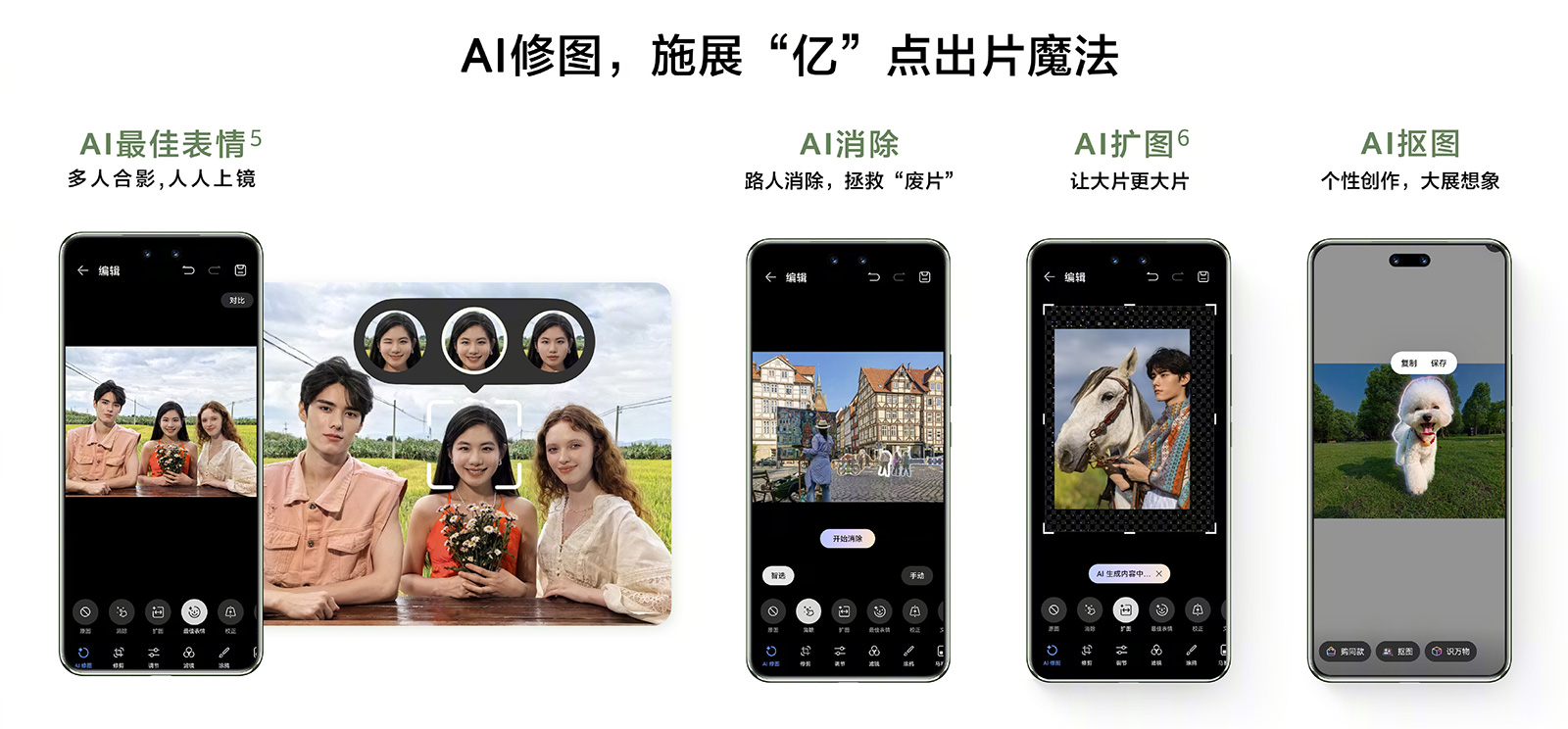 AI人工智能技術(shù)的普及,在攝影創(chuàng)作領(lǐng)域的場景應(yīng)用呈現(xiàn)越來越多玩法。華為作為AI影像的重要引領(lǐng)者和推動(dòng)者,也在持續(xù)創(chuàng)新突破,是用戶更值得信賴,以及有更高要求的選擇。華為nova 13系列首發(fā)AI最佳表情,多人合拍不必再擔(dān)心有小伙伴走神,一步到位輕松輸出每一位合拍者的好狀態(tài)。AI擴(kuò)圖與AI消除,是旅拍照片的專業(yè)修圖師,后者專治景區(qū)人多,便捷消除路人亂入,可讓你滿意的照片更趨完美。