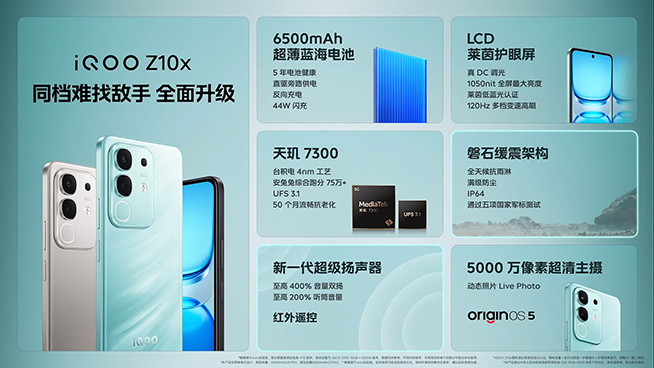 如果你對LCD屏有執(zhí)念,不妨考慮一下新品iQOO Z10x,其擁有6.72英寸120Hz多檔變速高刷LCD屏,全屏亮度至高為1050尼特,采用側(cè)邊指紋識別。該機配備天璣7300芯片,搭配UFS 3.1閃存,安兔兔跑分超過75萬,電池為6500mAh單電芯,44W閃充。這款機型有三款顏色四種配置,首銷價1099元起。添加科客公眾號kekebat,獲取更多精彩資訊。