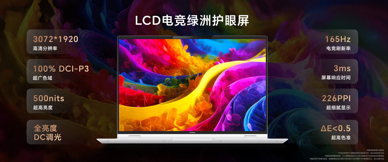 屏幕上,榮耀MagicBook Pro 16 2025全系搭載3072*1920高分辨率的LCD屏,16:10屏幕比例,屏占比達(dá)到93%,擁有100% DCI-P3廣色域,10.7 億色深。屏幕亮度最高500尼特,刷新率165Hz,屏幕響應(yīng)時間僅為3ms。支持行業(yè)最多的13種色彩模式,幾乎涵蓋99%的生產(chǎn)力場景。