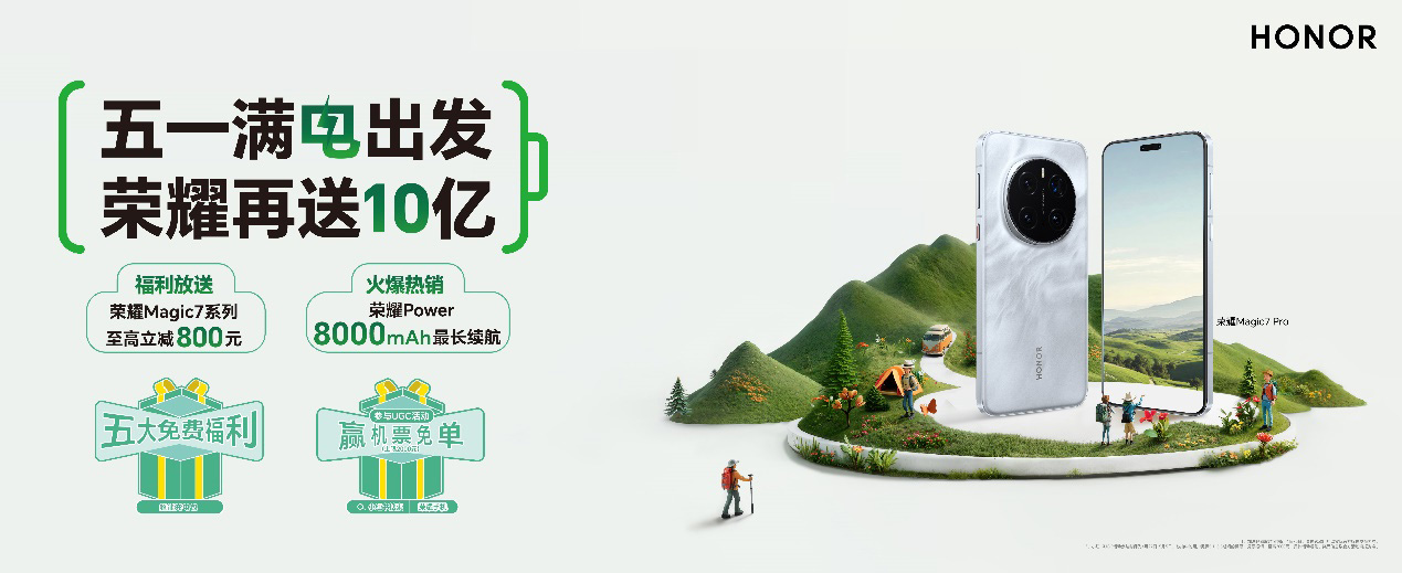 “五一滿電出發(fā),榮耀再送10億”補(bǔ)貼活動也已開啟,在“國補(bǔ)+廠補(bǔ)”雙重補(bǔ)貼下,榮耀Magic7系列手機(jī)至高立減800元,售價下探至3799元起。