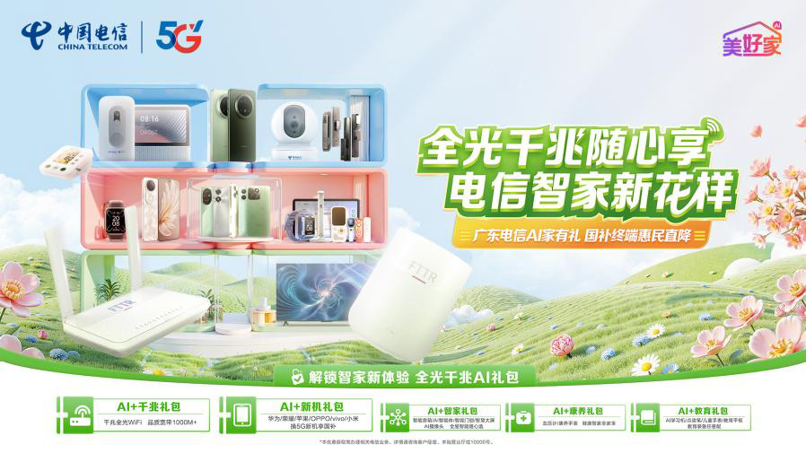 為滿足萬兆時代家庭及企業(yè)用戶不斷升級的網(wǎng)絡(luò)需求,加快“全民千兆”進程,推進“萬兆城市”建設(shè),自2025年5月16日起,廣東電信面向全省家庭用戶推出“千兆寬帶大提速”系列活動,包括:兩大無門檻寬帶提速活動普惠全城,4檔超千兆融合套餐任君選擇、5款千兆AI禮包更懂客戶的用網(wǎng)場景、1款家庭智能中控新終端(電信AI智能屏)開啟全屋智能、5項電信好服務(wù)新標(biāo)準(zhǔn)護航數(shù)字生活,還有超10萬份好禮到店即領(lǐng),千兆寬帶惠民提速福利大放送。