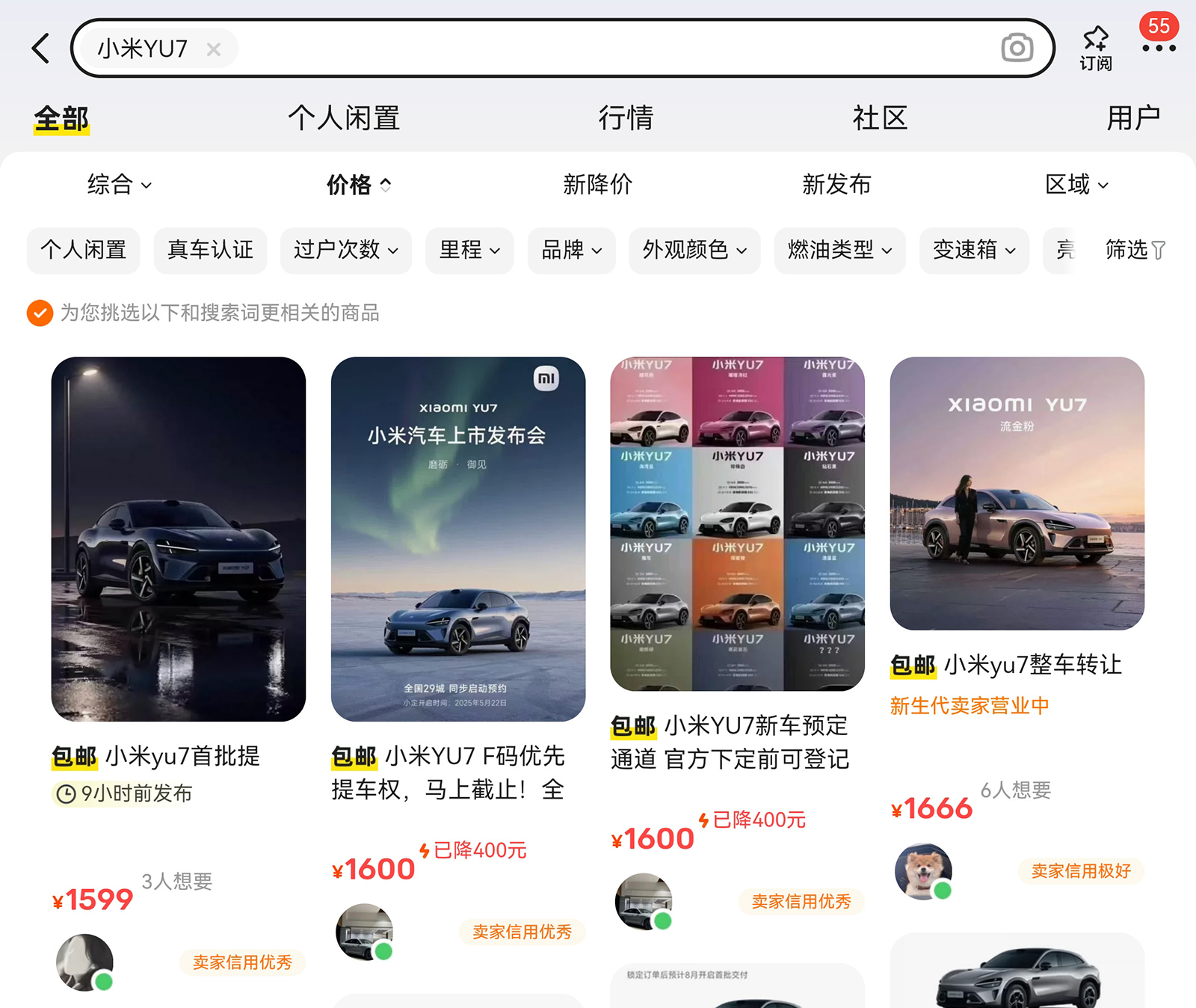 這種短時(shí)間內(nèi)難以解決的供需不平衡,也催生了新的商機(jī),小米YU7開(kāi)售后涌入不少黃牛。6月26日晚在交易平臺(tái)閑魚上,出現(xiàn)大量小米YU7訂單的轉(zhuǎn)讓,價(jià)格1599元起。