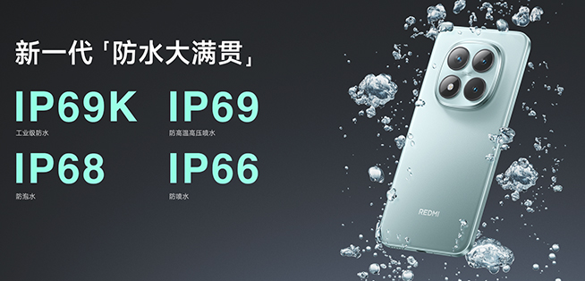 REDMI Note 15 Pro+ 支持 IP66 & IP68 & IP69 & IP69K 防水大滿(mǎn)貫,并通過(guò)行業(yè)首個(gè)南德「五星長(zhǎng)效防水品質(zhì)認(rèn)證」,可輕松抵御日常淋雨,意外浸泡、落水,甚至熱水噴淋、高壓噴水都能應(yīng)對(duì)自如。