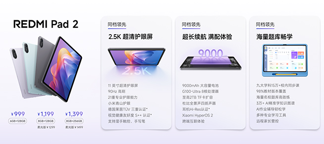 REDMI Pad 2正式發(fā)布,2.5K超清柔光屏,海量教育一步到位
