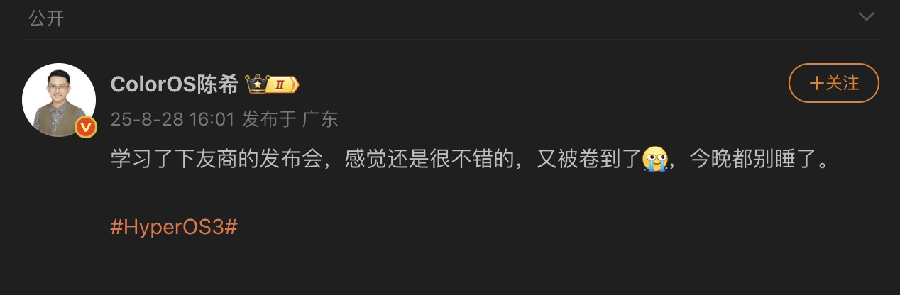 值得一提的是,小米澎湃OS3發(fā)布后,OPPO ColorOS設(shè)計總監(jiān)公開點評“很不錯”,其實不僅是商業(yè)互吹,也是承接友商流量,讓大家期待ColorOS 16的后續(xù)動態(tài)。添加科客公眾號kekebat,獲取更多精彩資訊。