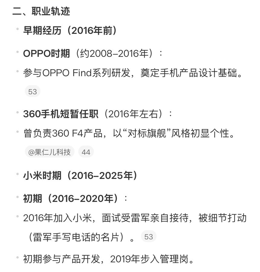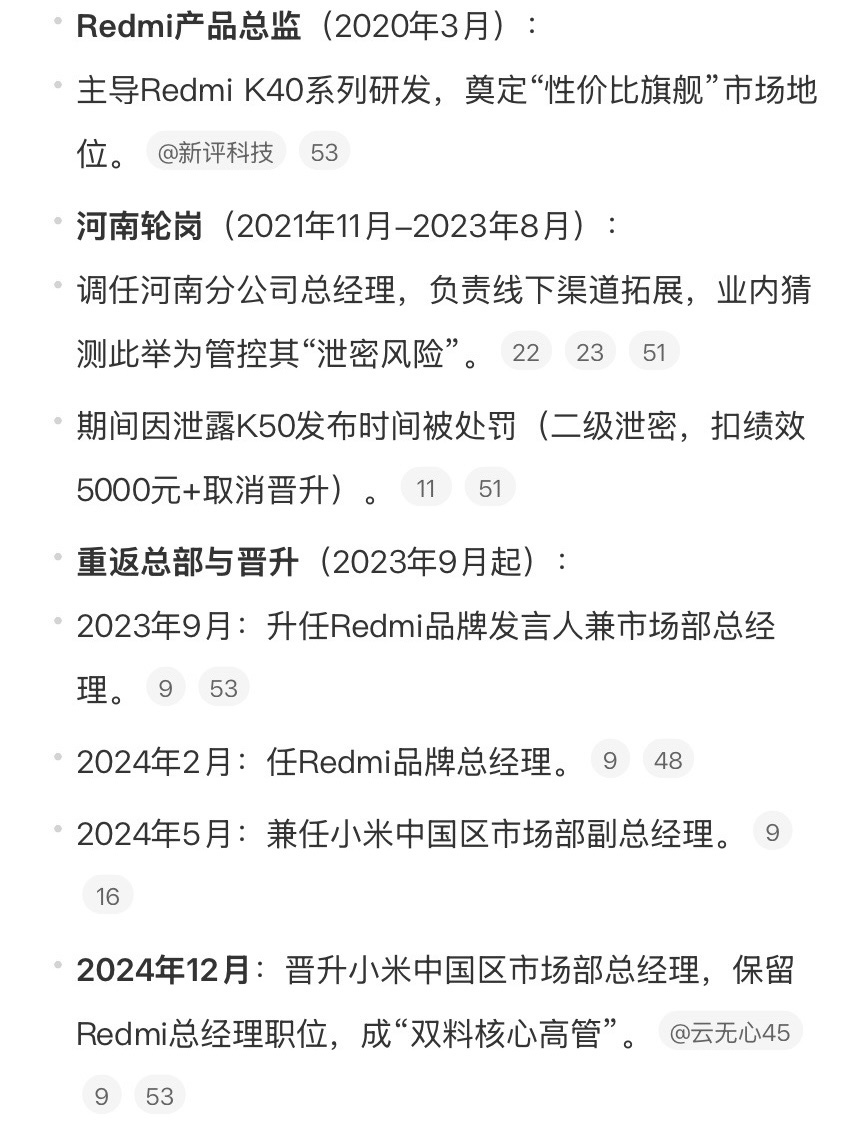 相關資料顯示,王騰生于1987年,曾任職于OPPO和360手機。2016年王騰加入小米,在小米工作期間曾因泄密被處罰,離職時在小米職級為21級,屬于中層管理干部。因泄密被小米辭退后,王騰未來在大廠再任要職的可能性不大了。