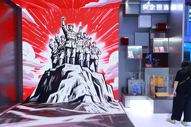 今年正值中國(guó)人民抗日戰(zhàn)爭(zhēng)暨世界反法西斯戰(zhàn)爭(zhēng)勝利80周年,展區(qū)內(nèi)陳列的“半部電臺(tái)”、骨架電話機(jī)等珍貴歷史實(shí)物,與講述“紅色電信精神”的沉浸式視頻相得益彰。