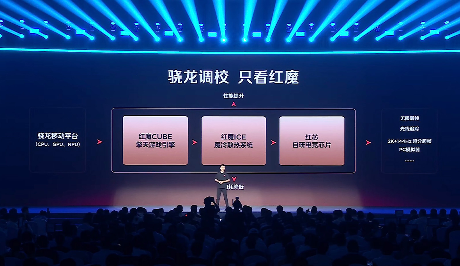 在發(fā)布會(huì)上,紅魔游戲手機(jī)產(chǎn)品總經(jīng)理姜超表示,友商的風(fēng)冷效果相當(dāng)于紅魔的1.0版本,現(xiàn)在紅魔11 Pro已進(jìn)化至3.0版本。在友商的鞭策下,紅魔11 Pro系列的風(fēng)扇轉(zhuǎn)速終于實(shí)現(xiàn)突破,其每分鐘轉(zhuǎn)速提升至24000轉(zhuǎn),風(fēng)冷散熱的表現(xiàn)得到加強(qiáng)。為探索手機(jī)散熱的更多可能性,紅魔11 Pro+專(zhuān)門(mén)打造了水冷解決方案,并通過(guò)透明后蓋直接將藍(lán)透的圓環(huán)、循環(huán)轉(zhuǎn)動(dòng)的水冷液展示在用戶(hù)面前。雙冷方案結(jié)合,紅魔游戲手機(jī)能夠更快散熱。