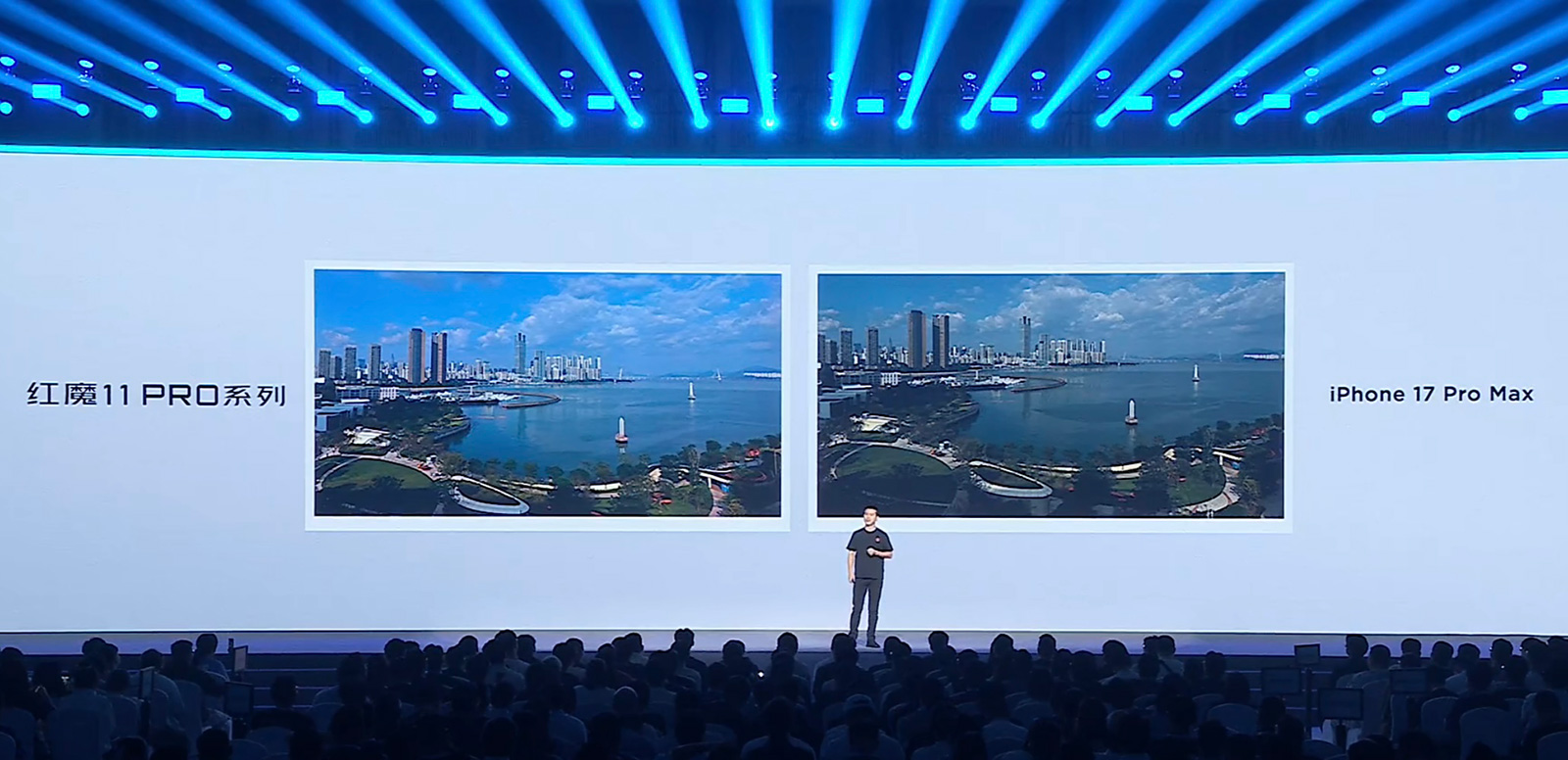 紅魔11 Pro系列后置三攝,不過(guò)新增的鏡頭并非長(zhǎng)焦,而是湊數(shù)的200萬(wàn)像素微距鏡頭。紅魔發(fā)布會(huì)上專(zhuān)門(mén)拿蘋(píng)果iPhone 17 Pro Max對(duì)比拍照效果,稱(chēng)“蘋(píng)果給的是原材料,紅魔是社交級(jí)的成片”。