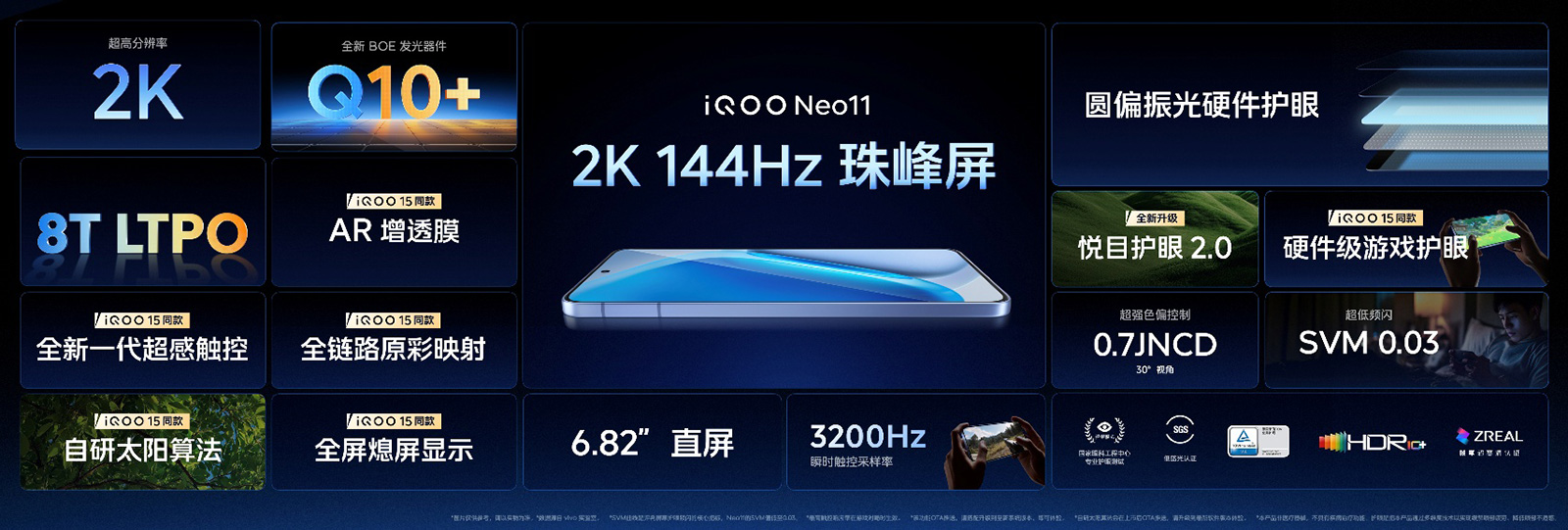 無 2K,不旗艦。憑借在清晰、色彩、亮度、觸控和護眼等方面的諸多優(yōu)勢,2K 144Hz珠峰屏可能是最強 2K 國產屏,極致調校配雙芯,助 Neo11 實現(xiàn)“一機制勝”。