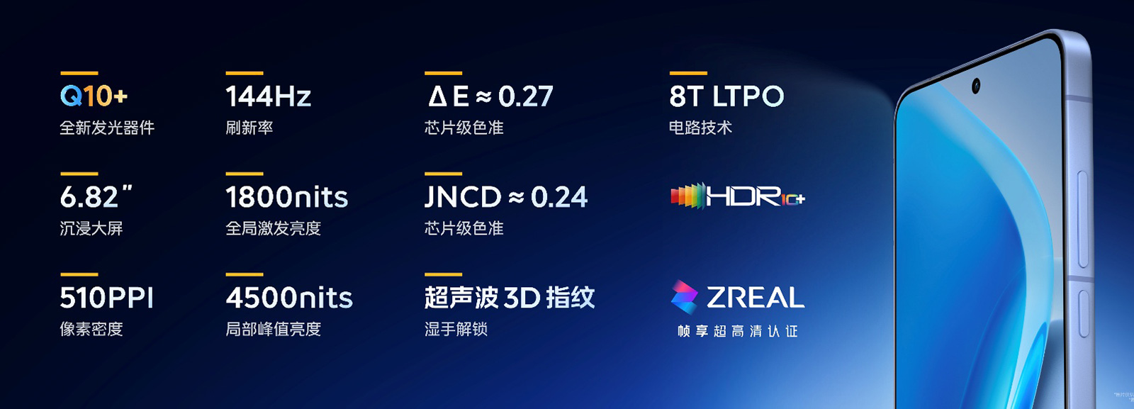 Neo11 的 2K 144Hz 珠峰屏具備全版本標配透光率高達 95.4% 的 AR 增透膜、自研太陽算法、全鏈路原彩映射和全屏熄屏顯示等旗艦同款,還擁有無懼濕手解鎖的超聲波 3D 指紋,屏幕體驗更完善。