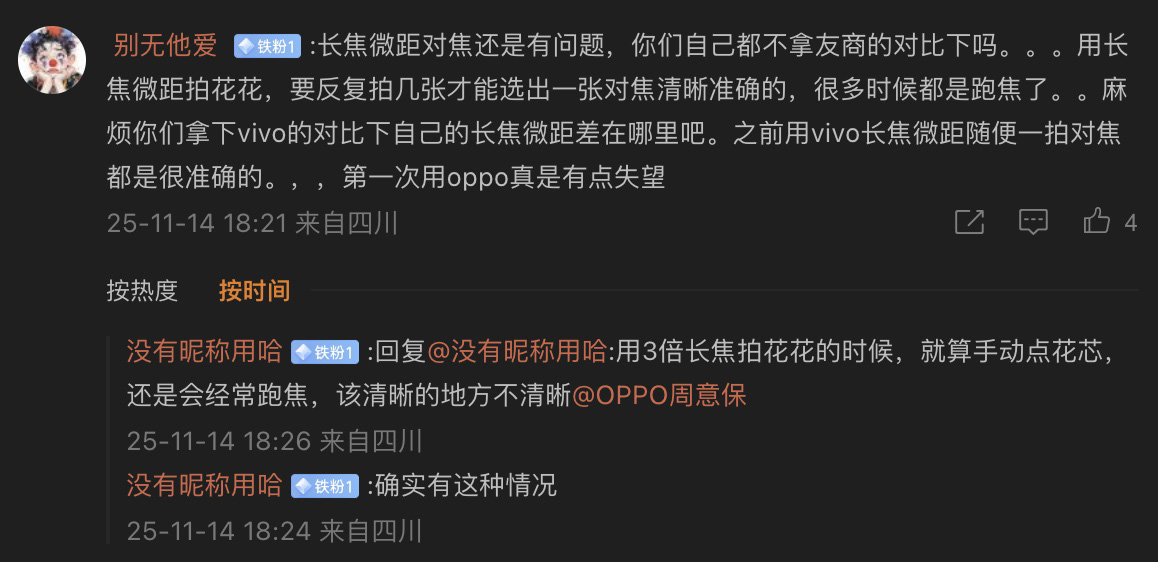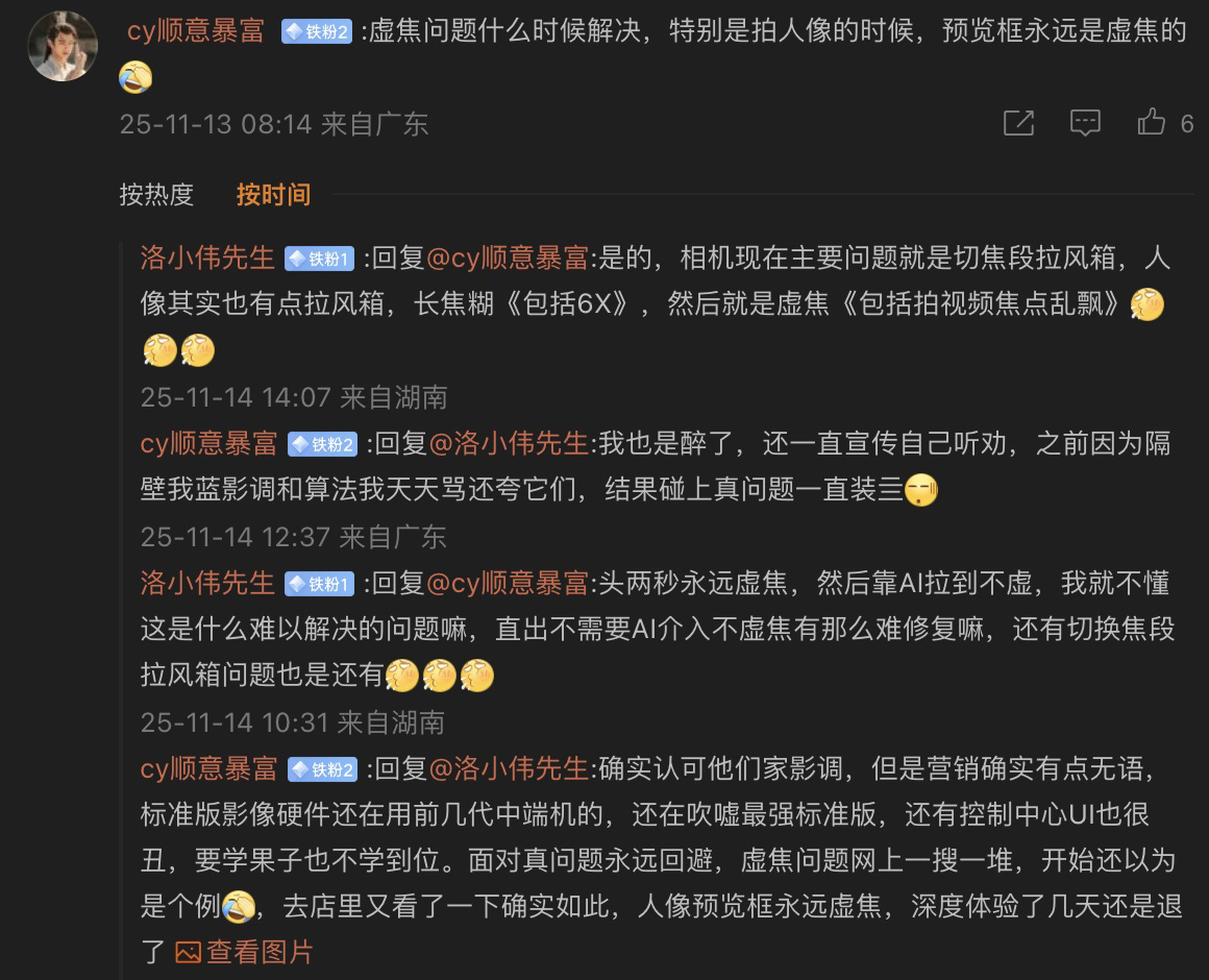 產(chǎn)品還沒調(diào)好就匆忙上市銷售,講真是對用戶的不負責(zé)?;凇百u家秀”和“買家秀”的較大落差,不少消費者質(zhì)疑OPPO Find X9 Pro影像宣傳物料夸大宣傳甚至是虛假營銷。面對越來越多用戶的吐槽,OPPO嘗試通過密集的系統(tǒng)升級來應(yīng)對,甚至連一個不到34M的OTA更新包也要拿出來說。然而從多平臺用戶評論反饋來看,OPPO Find X9 Pro經(jīng)過多次系統(tǒng)升級之后,影像畫質(zhì)、對焦等關(guān)鍵表現(xiàn)的改善并不明顯。