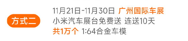 11月21日,2025廣州車展媒體日開啟,本屆車展展出車型超過1000臺,新車首發(fā)93臺。據(jù)現(xiàn)場觀察,小米汽車展臺依然人氣很高,在去年大受好評的為觀眾送飲用水基礎(chǔ)上,今年廣州車展小米還送車模,每天1000個,連送10天(現(xiàn)場領(lǐng)取規(guī)則可見下圖)。