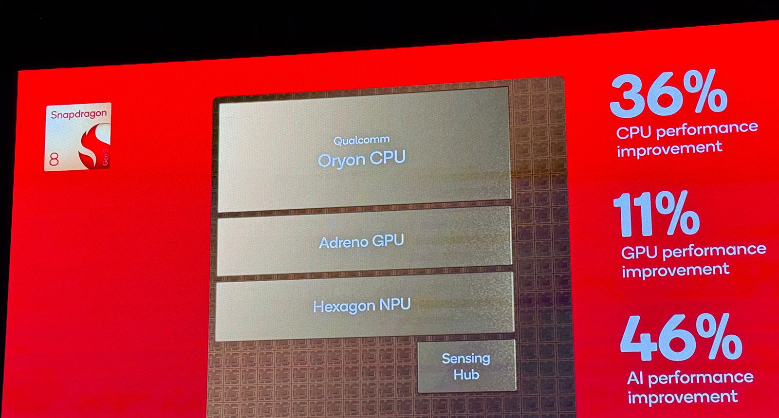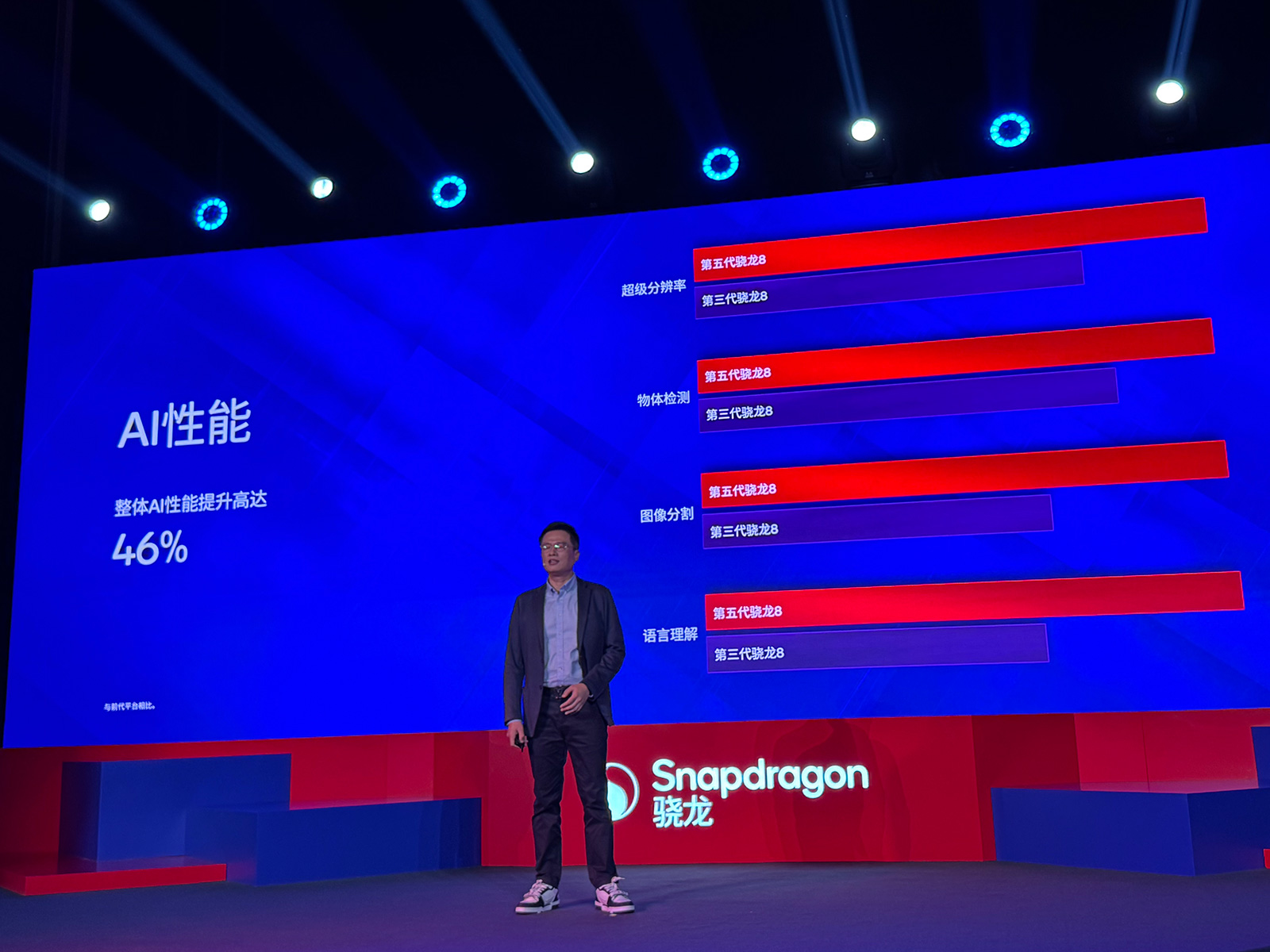 圖形性能方面,第五代驍龍8搭載的Adreno GPU相比上代產(chǎn)品,性能提升11%,功耗領(lǐng)先28%。另外,第五代驍龍8的整體AI性能大漲46%。