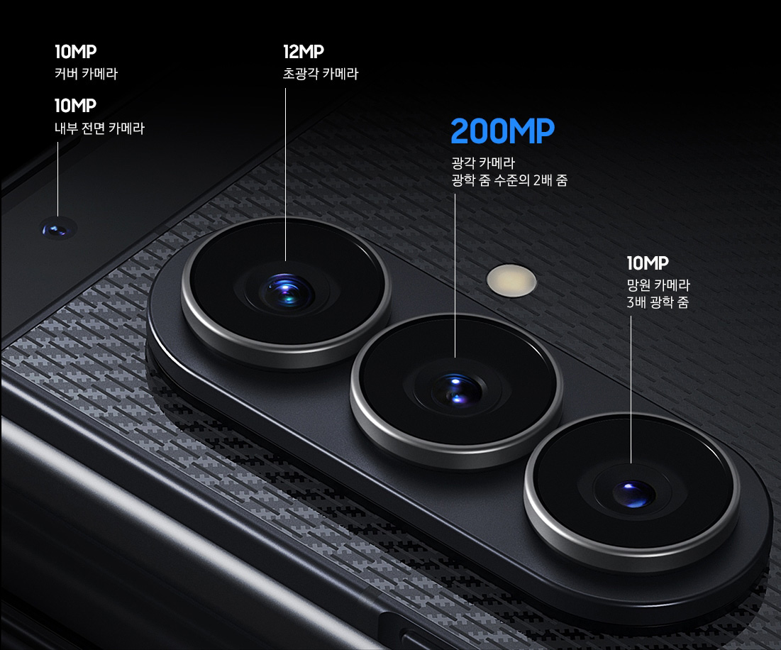 在手機(jī)背面,三星Galaxy Z TriFold選用陶瓷玻纖背板,加入凱夫拉紋理,整體氣質(zhì)更沉穩(wěn),只可惜僅有黑色版本銷售。該機(jī)后置三攝的Deco風(fēng)格與三星Galaxy Z Fold7一致,2億像素主攝采用F1.7大光圈和OIS光學(xué)防抖,1200萬像素直立式3x長焦同樣帶OIS光學(xué)防抖,光圈F2.2,1000萬像素超廣角鏡頭FOV為120度。此外,三星Galaxy Z TriFold內(nèi)外屏都還有1000萬像素的自拍攝像頭。