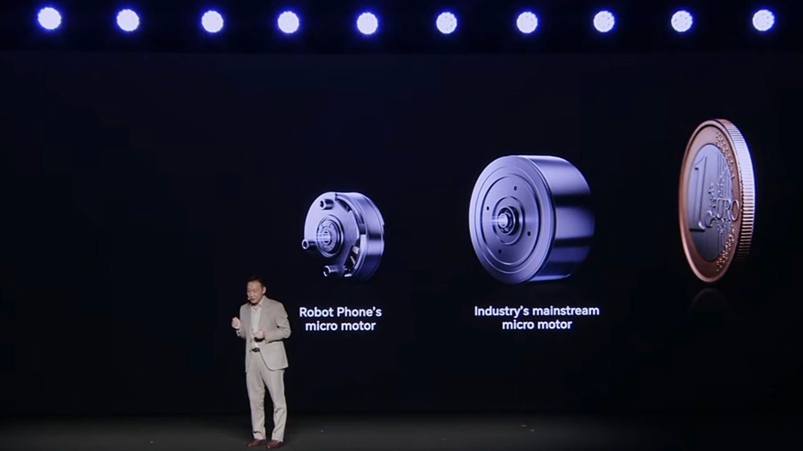 榮耀Robot Phone的旋轉(zhuǎn)攝像頭為2億像素,官方并未公布更多的參數(shù)信息,從相關(guān)素材看,旁邊還有兩顆固定的攝像頭。Robot Phone運(yùn)用超小定制電機(jī),號(hào)稱比傳統(tǒng)電機(jī)體積小70%,尺寸比1歐元硬幣更小。
