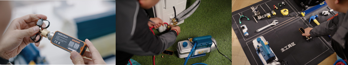 傳統(tǒng)的安裝方式下,安裝師傅用真空泵 + 機(jī)械表 + 人工看表計時,無數(shù)據(jù)、無記錄,全憑師傅的經(jīng)驗和良心。這讓空調(diào)安裝中最關(guān)鍵的關(guān)節(jié)成為了“黑盒”。