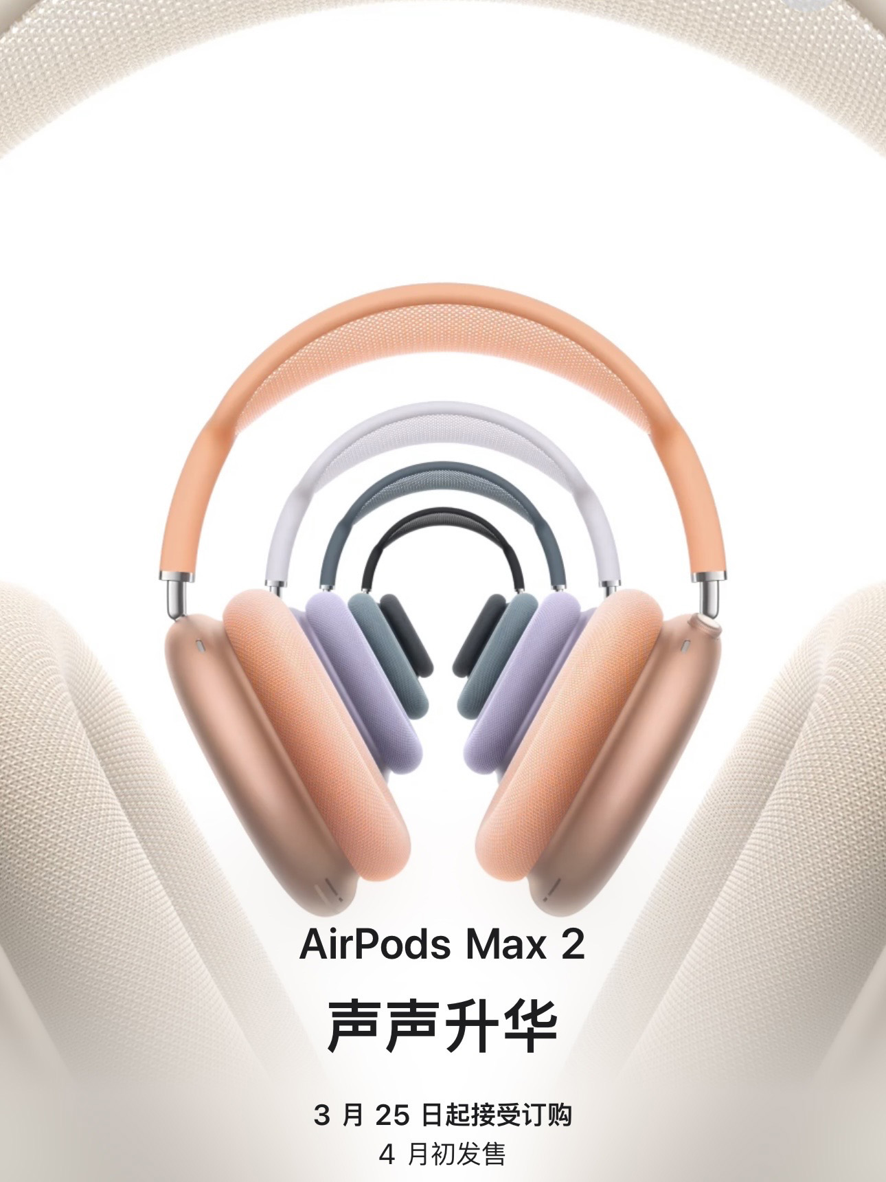 初代蘋果AirPods Max于2020年12月推出,國行定價(jià)4399元。2026年3月16日直接上架的第二代蘋果頭戴無線耳機(jī),價(jià)格為3999元,將于3月25日開啟預(yù)訂,4月初上市,每人限購6副。