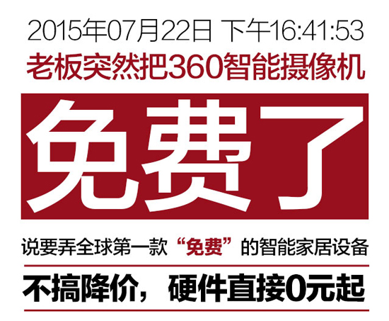 7月22日,360周鴻祎宣布小水滴攝像頭硬件永遠(yuǎn)免費(fèi),前期將以100萬(wàn)臺(tái)進(jìn)行試驗(yàn)。在未來(lái),360還將以此為起點(diǎn),不斷嘗試硬件免費(fèi)模式,