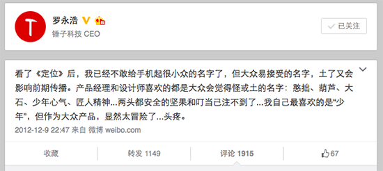 原來是它!錘子新機(jī)名字確定:堅(jiān)果手機(jī)