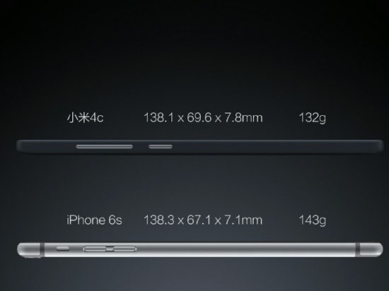 雷軍不服蘋果:小米4c比iPhone 6S輕11克!