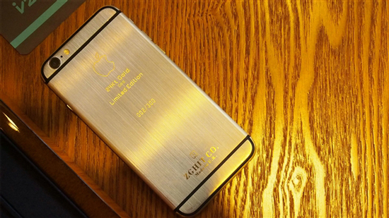 首先需要說明,這確確實實是一臺iPhone 6s,新鮮出爐。但大家也看到,它和蘋果官方的又有些不同。這部手機的名稱叫:ZG GOLD iPhone 6s,25Kt黃金經典版。