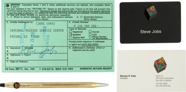 以下是Mark在Facebook上展示但此次未參與拍賣的物品,有IBM文化衫、領(lǐng)結(jié)、照片、退稅單等。關(guān)注科客網(wǎng)官方微信kekebat,獲取更多精彩資訊。(快科技,原標(biāo)題《喬布斯個(gè)人物品拍賣:被扔涼鞋5500元起》)
